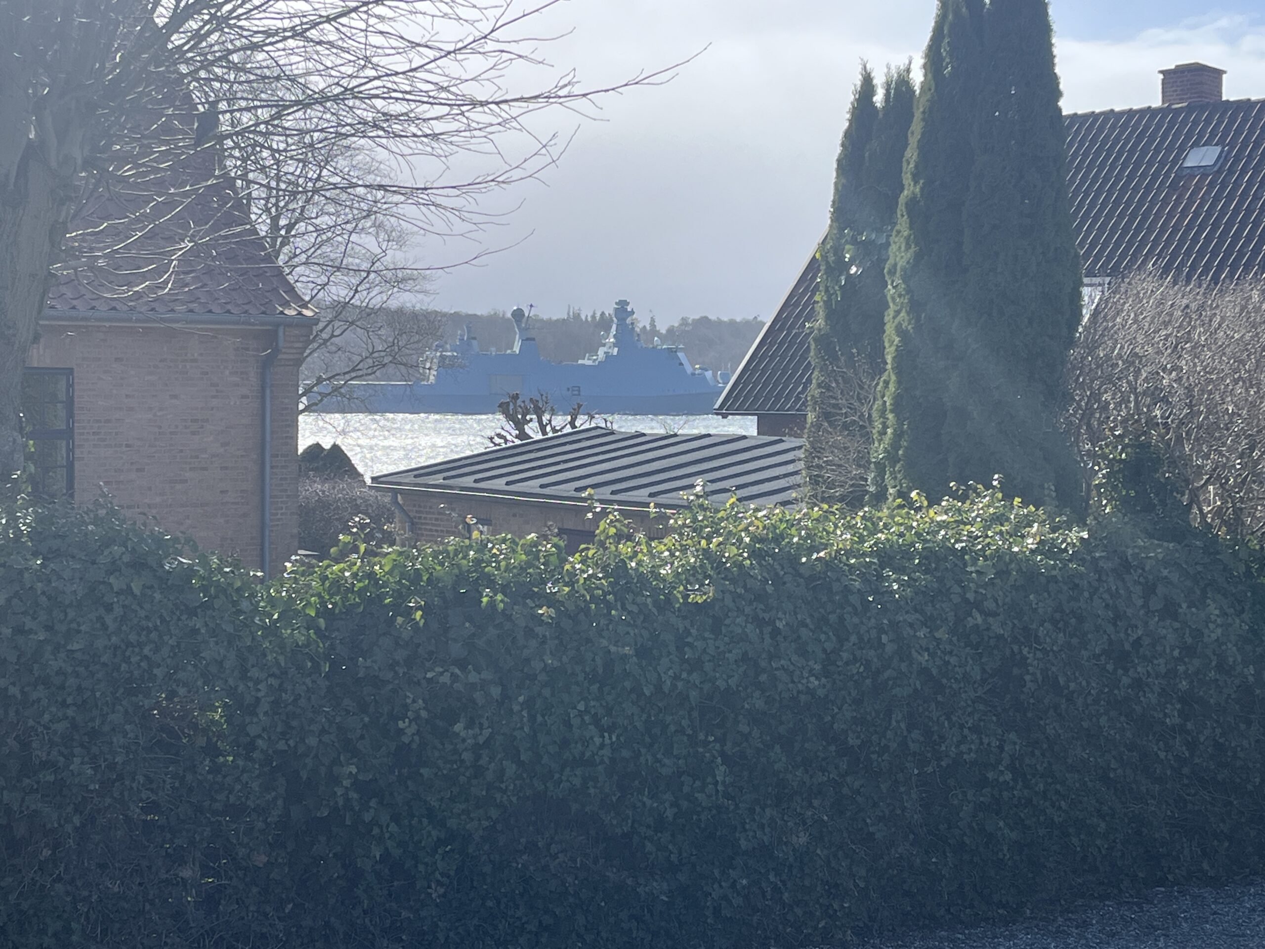 Krigsskib Fregatten Esben Snare igennem Lillebælt.